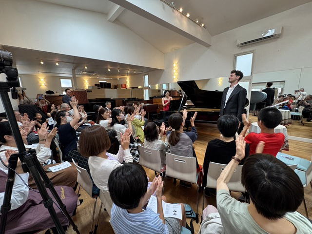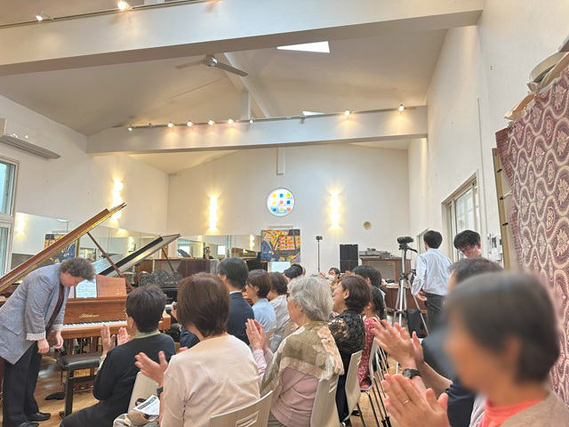 ホールはほぼ満席となり、あたたかな観客のまなざしに見守られながら、全プログラムとアンコール曲を堂々と弾き切りました。終演後には和やかな挨拶の列ができ、その中にはホロコーストを生き抜いたことでも知られる88歳のピアニスト、